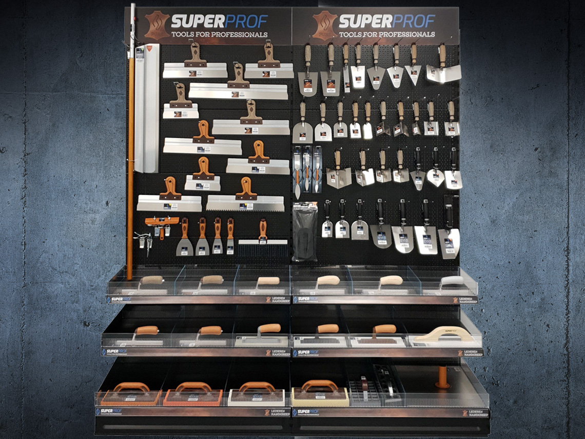Met dit winkelconcept presenteert u hét totaalassortiment voor de stukadoor: troffels, plamuurmessen, spack- en gipsmessen, pleisterspanen, raapspanen, opzetspanen, schuursponzen, paleerijzers, het innovatieve Multi Click-systeem, raapborden en nog veel meer. Alles wat de stukadoor zoekt – in één compleet concept!