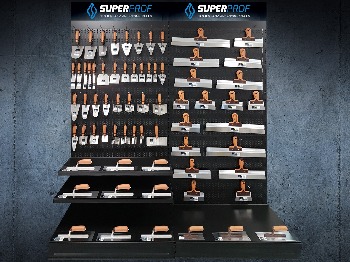 Die breite Super Prof Produktpalette umfasst Handwerkszeug für etliche professionelle Zielgruppen wie Fliesenleger, Stuckateure, Maurer, Fassadenmaurer, Plattenleger, Anstreicher, Trockenbauarbeiter und Gasbetonbauer.
