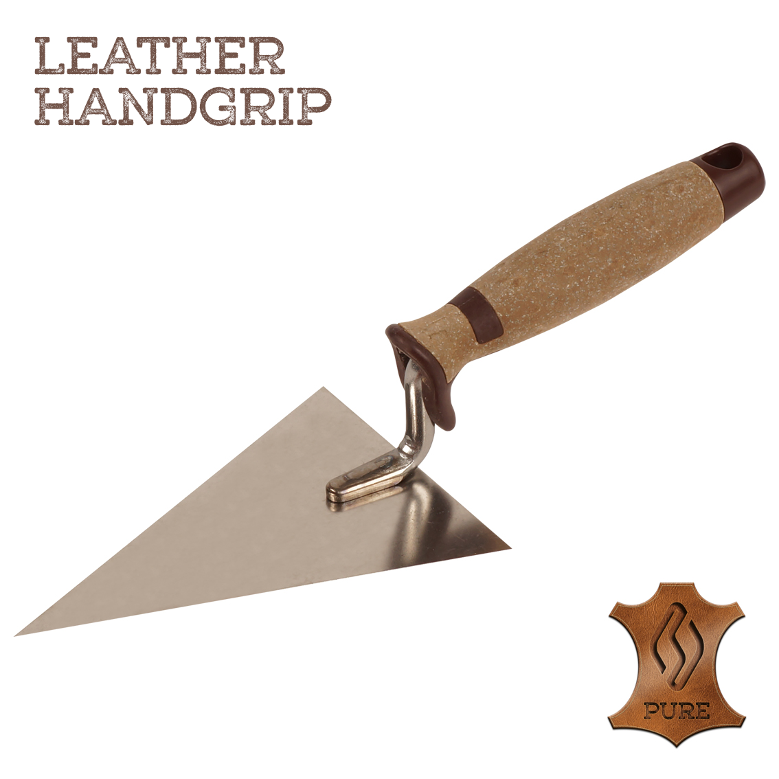De Pure stukadoorstroffels van Super Prof zijn voorzien van een ergonomische lederen handgreep met vingerbescherming, welke het vocht beter opneemt. Hierdoor krijgt men een betere grip en worden het werkcomfort en de productiviteit bevorderd.